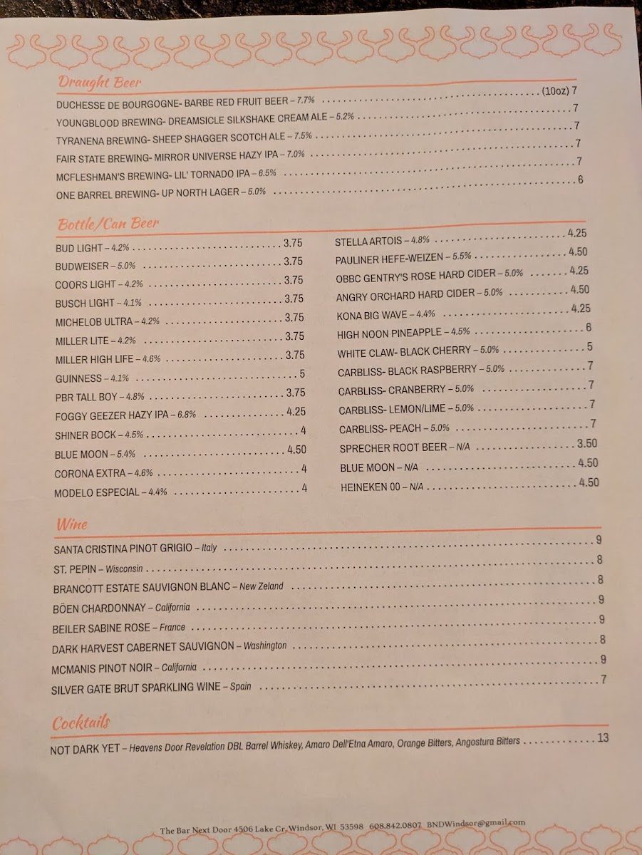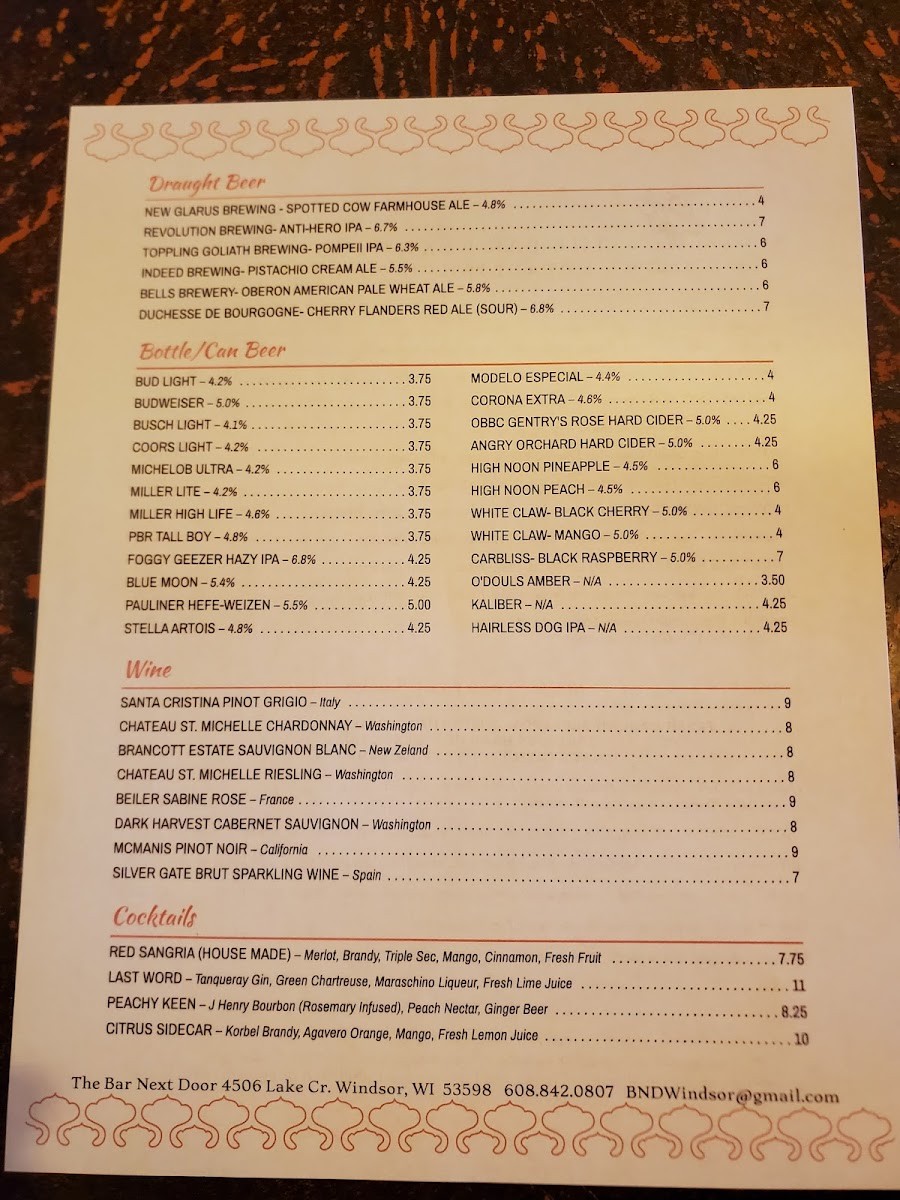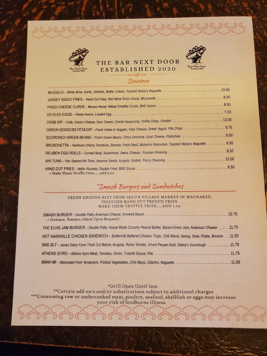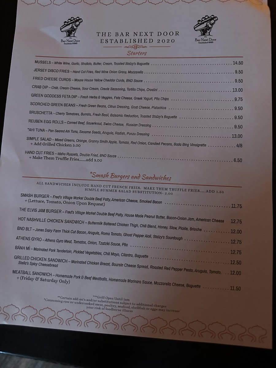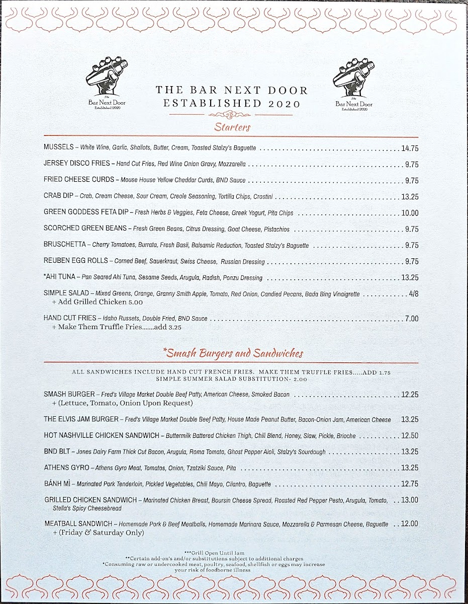 The Bar Next Door Menu